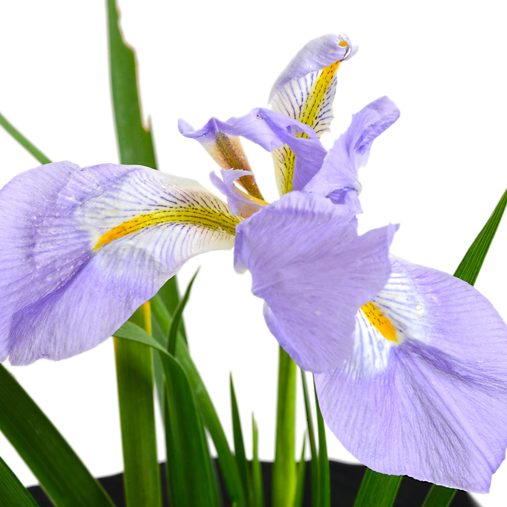 Pequeña planta bulbosa o rizomatosa perenne, famosa por florecer en los meses fríos (noviembre-abril). Produce flores llamativas de color azul, violeta o blanco con bandas amarillas, destacando en jardines de invierno por su resistencia a heladas y follaje en forma de espada.