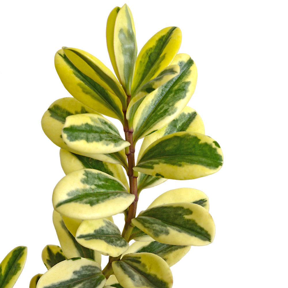 Arbusto perenne compacto, ornamental por su follaje de hojas verde con bordes blanco cremoso ideal para borduras, macetas y setos bajos, floreciendo con pequeñas espigas violetas o blancas en verano y otoño.
